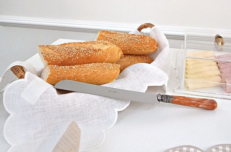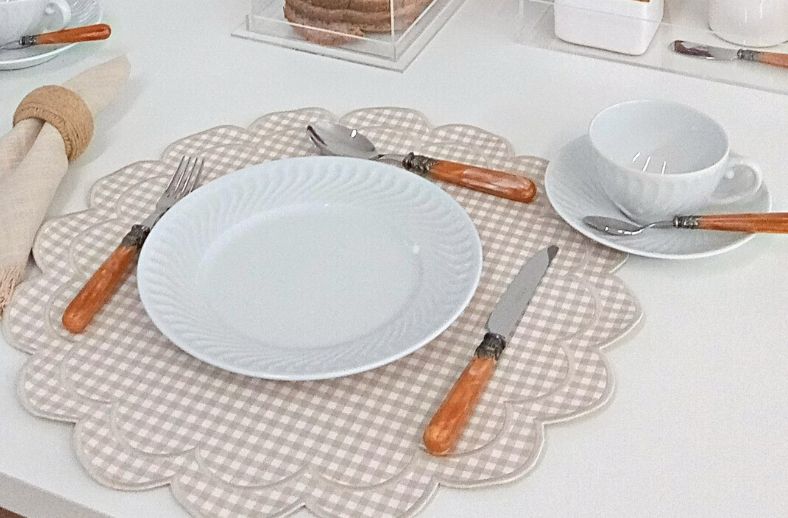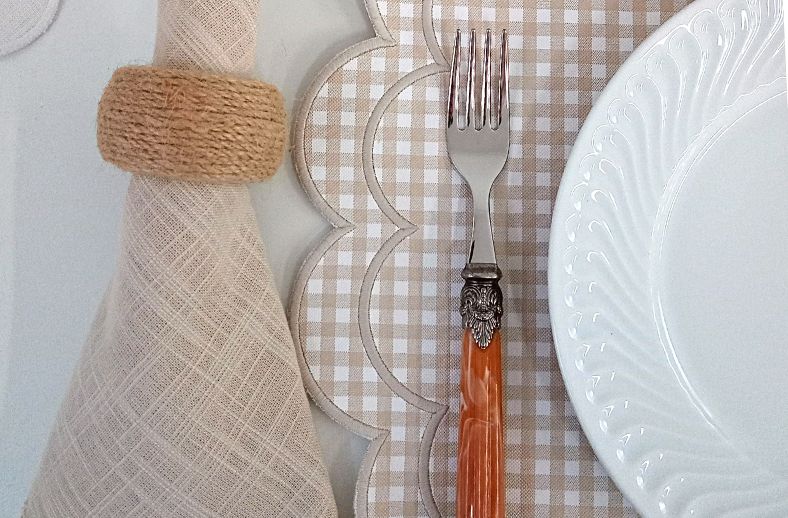 Nesta produção com jogos americanos vichy fendi e talheres EME no tom caramelo que acabaram de retornar ao estoque.