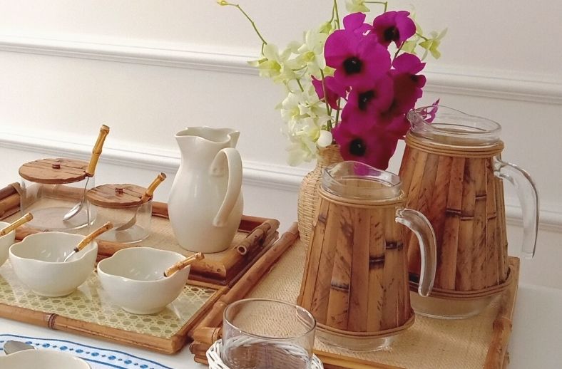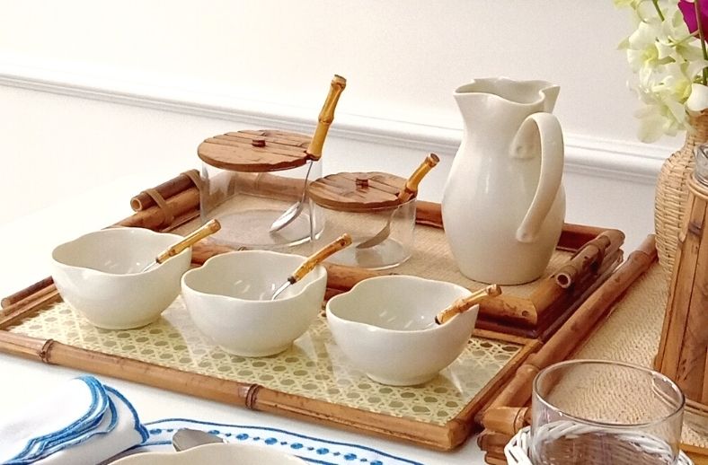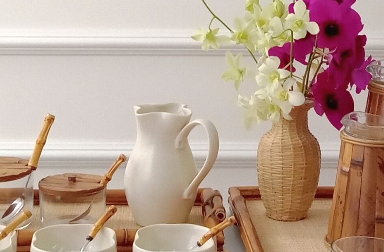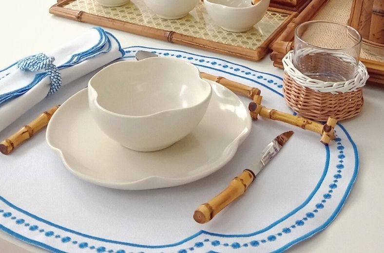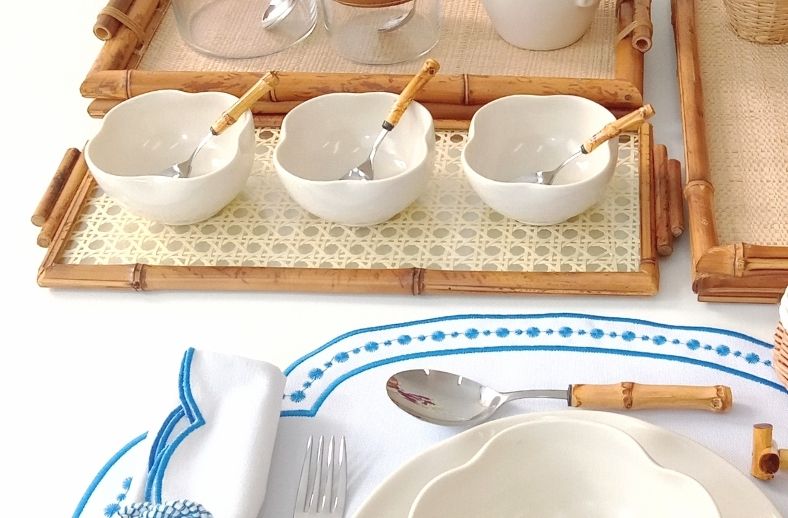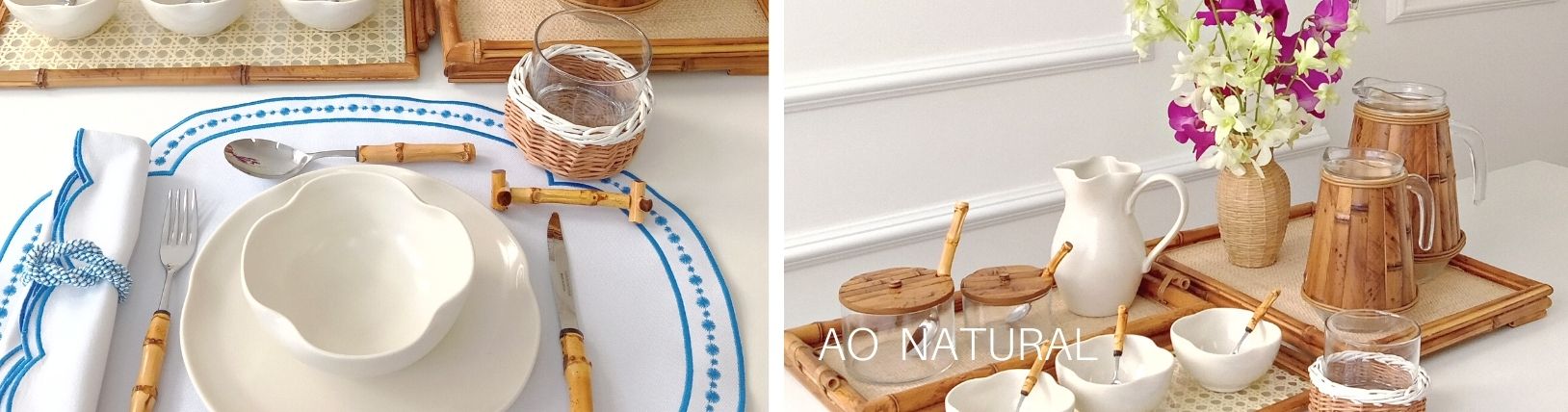 Para um clima de aconchego e leveza, optamos por nossa peças da Coleção Olinda Off White, para um tom mais quente acrescentamos peças em bambu natural e palha.