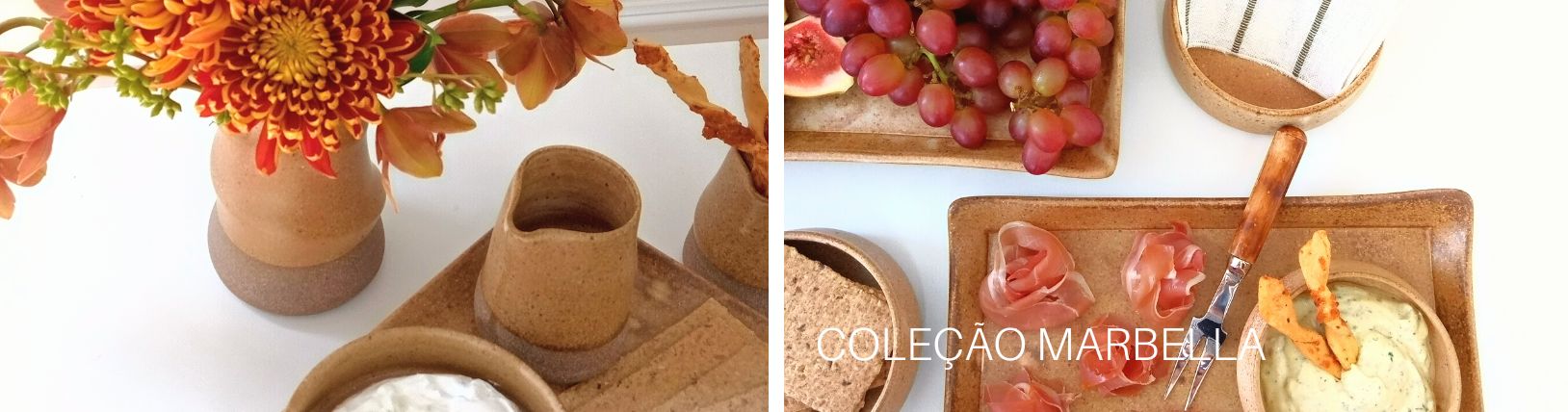 Buscamos peças com design contemporâneo e que ao mesmo tempo nos remetessem às cores e texturas da terra, quando vimos a Coleção Marbella foi amor à primeira vista, além disso cada uma das peças foi feita à mão o que as fazem únicas e especiais.